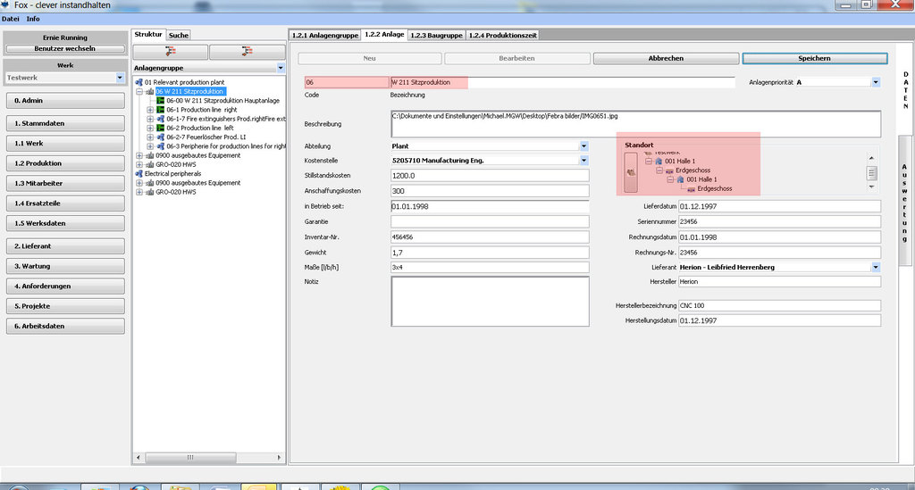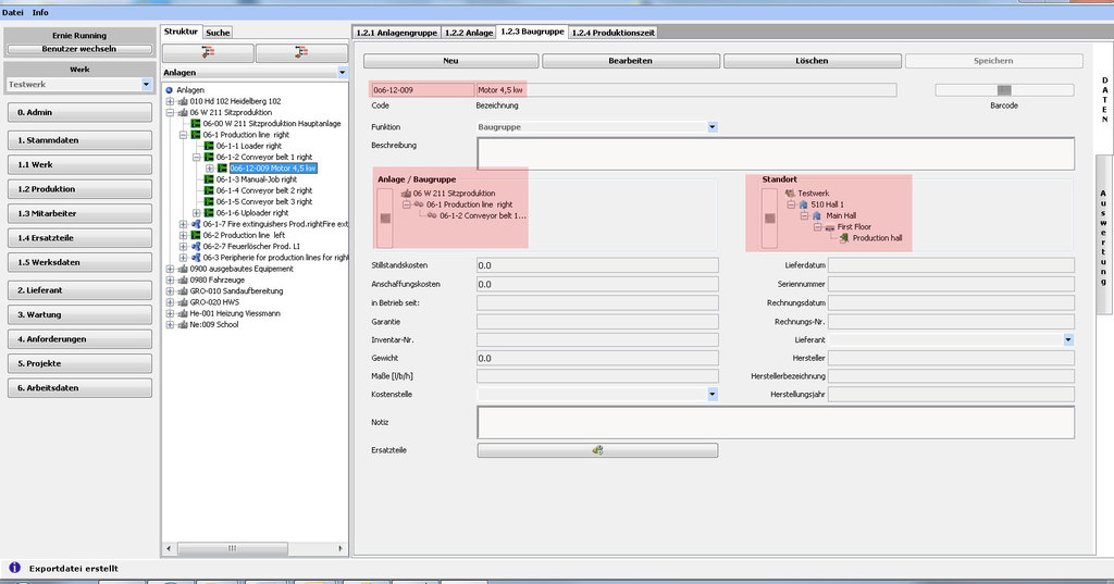 Dadurch ist eine klar strukturierte Darstellung der Produktionsanlagen mit den jeweiligen Standorten möglich, um eine Optimierung der Arbeitsabläufe, z.B. Wegezeiten der Instandhalter, zu