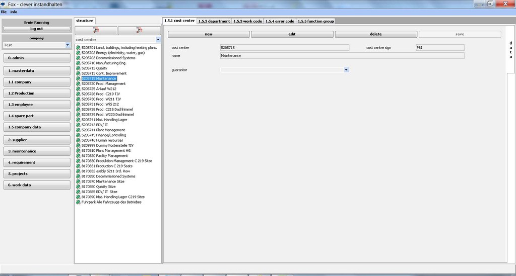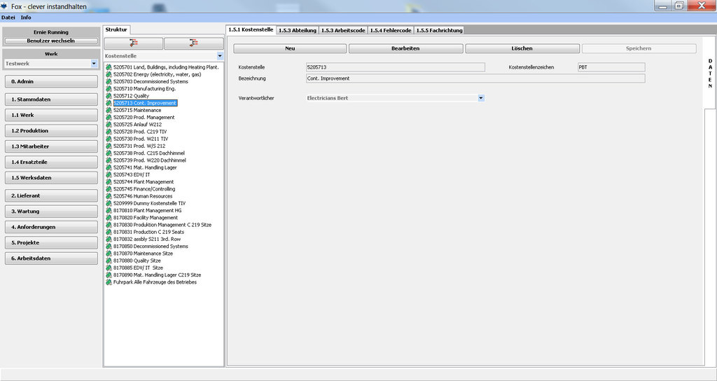 Kostenstellen werden hier erfasst um diese den einzelnen Anlagen/Baugruppen zuzuordnen und gegebenenfalls auszuwerten.
