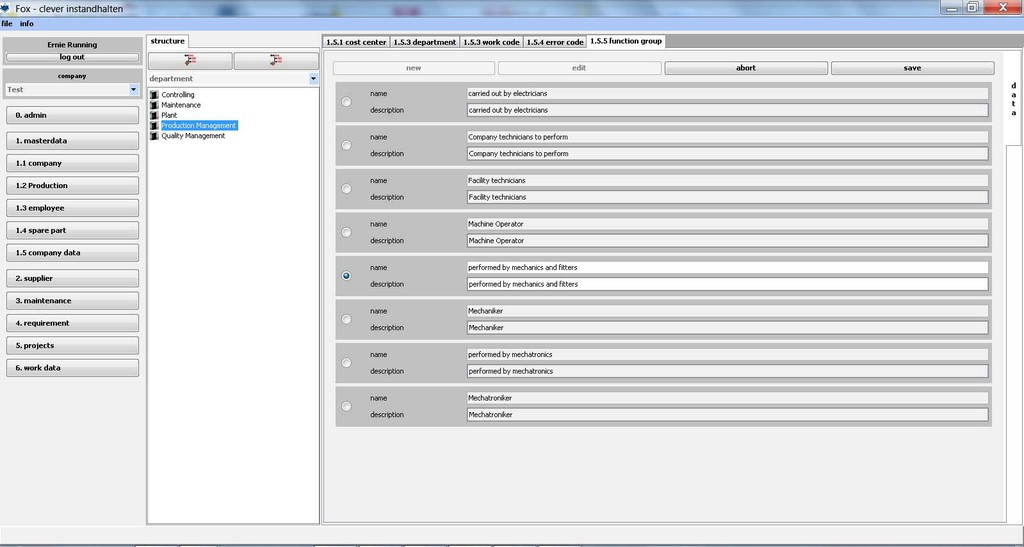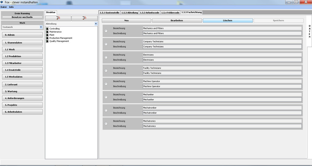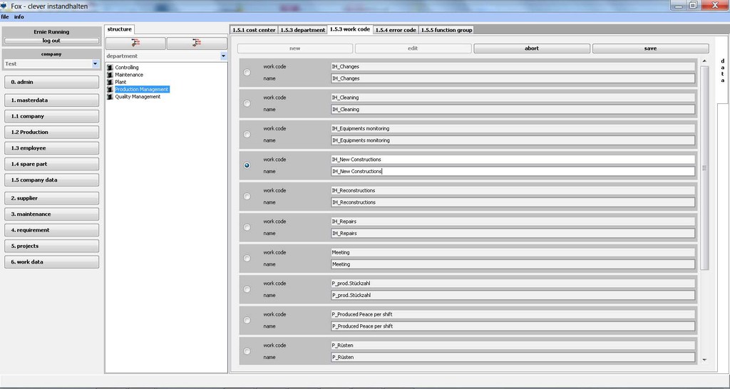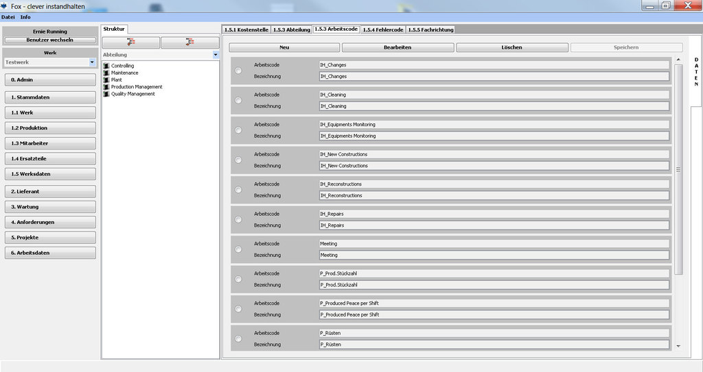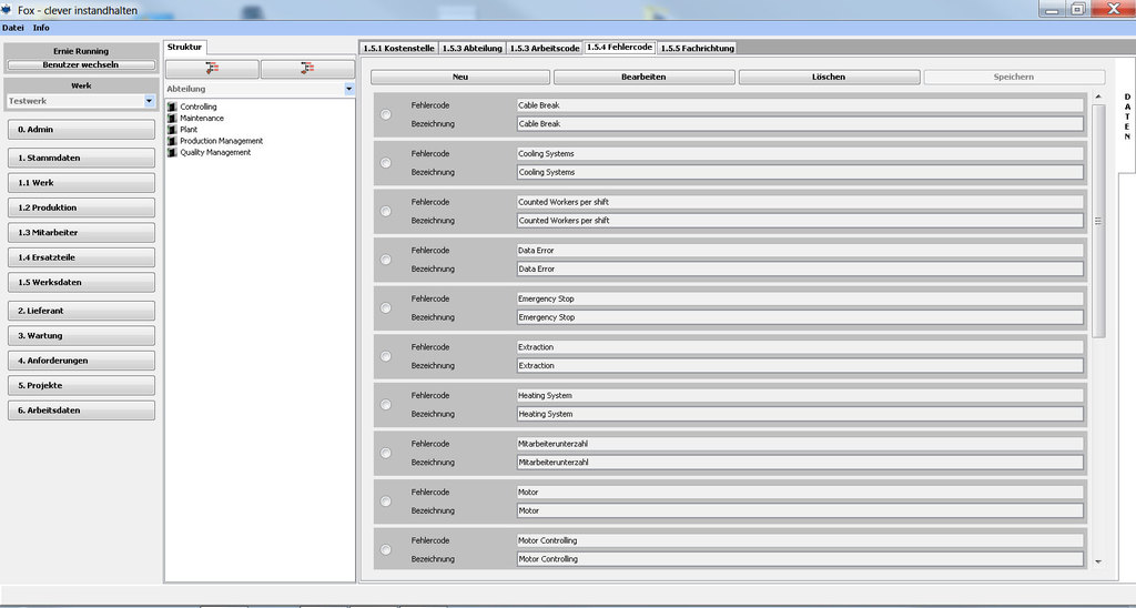 Durch frei definierbare Arbeits- und Fehlercodes können Sie das Programm Fox-clever instandhalten auf die Bedürfnisse Ihres Werkes, Ihrer Anlagen/Baugruppen und Ihrer Mitarbeiter zuschneiden, um auch hier genaue Auswertungen über ihre Anlagen oder Baugruppen zu erhalten.