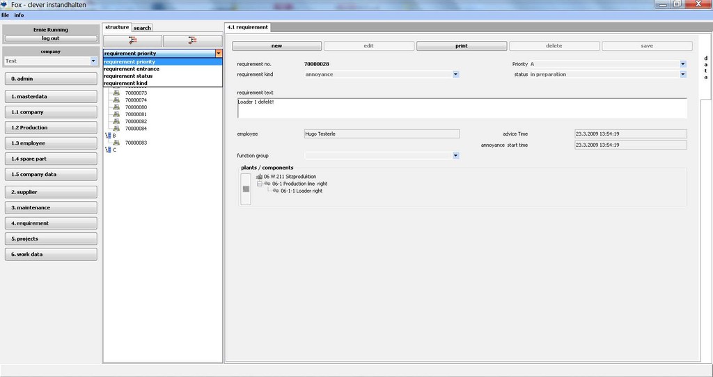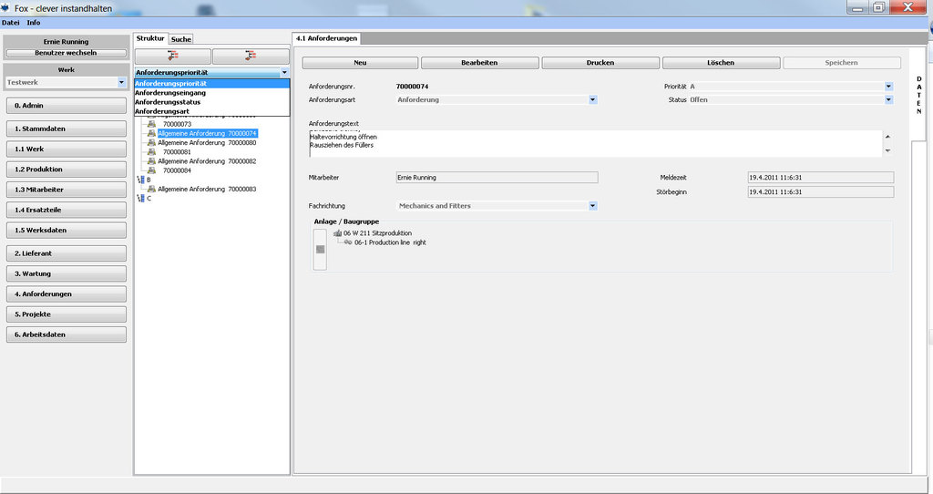 Anforderungen sind Arbeitsaufträge die sie der Mitarbeiterfachrichtung zuordnen und der jeweiligen Anlage oder Baugruppe vergeben.