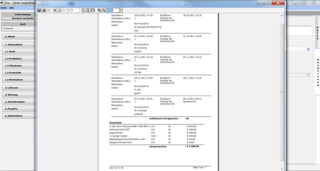 Sie erhalten einen lückenlosen Nachweis wann welcher Mitarbeiter die einzelnen Tätigkeiten ausgeführt hat. Export nach CSV möglich.