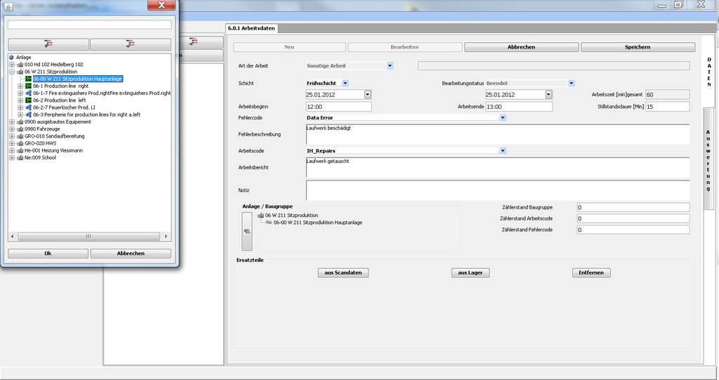 als Ursache, deshalb ist Fehlercode und Fehlerbeschreibung kein Pflichtfeld. Aus gegebenen Anlass haben wir die Stillstanddauer zu einem Pflichtfeld gemacht auch wenn man eine 0 eingeben kann, denn