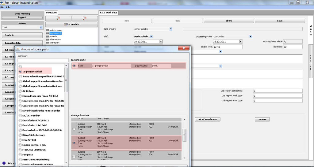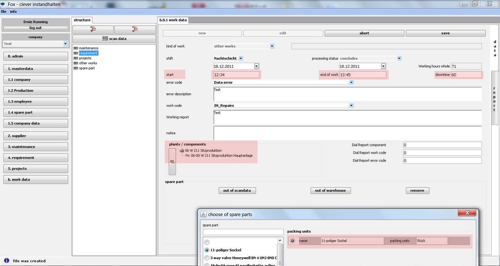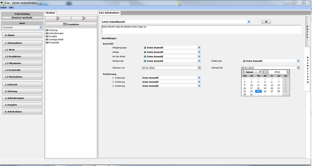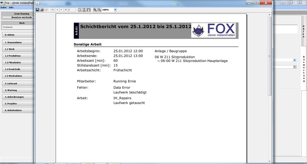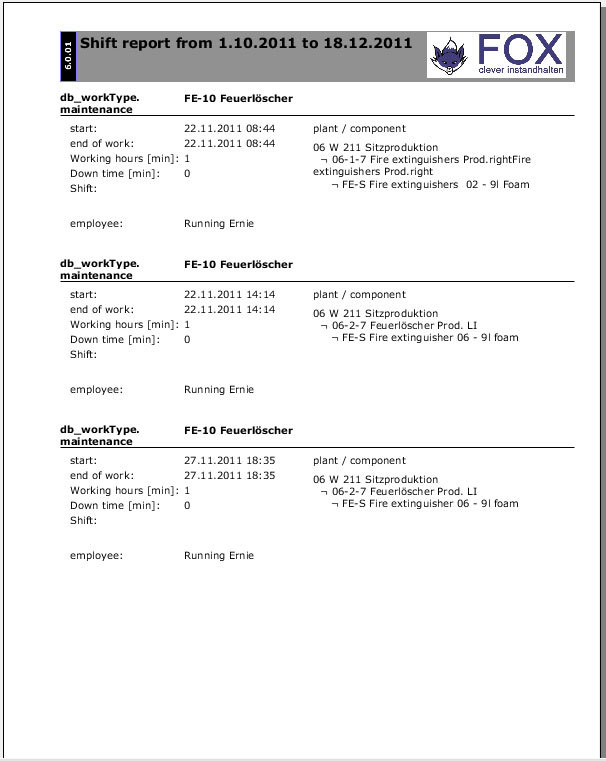 Die gesamten Arbeiten lassen sich im Schichtbericht nach Auswahlkriterien sortiert einsehen, so dass auch Mitarbeiter die Möglichkeit haben, einen Fehler in einer Anlage oder Baugruppe zu suchen und zu finden oder im Notfall den Kollegen, der die Reparatur durchgeführt hat, anzurufen.