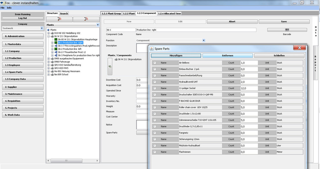 Ersatzteile der Baugruppe zugeordnet und als verbaubar gekennzeichnet werden. Sie erhalten so automatisch ein Maschinenkataster.